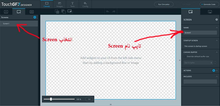 ایجاد یک پروژه جدید در TouchGFX Designer