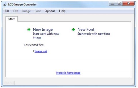 برای تبدیل یک تصویر، ابتدا باید ابزار LCD-Image-Converter را اجرا کند، سپس در صفحه اصلی نشان داده شده در شکل زیر، روی File-> Open کلیک کرده و فایل تصویری را که باید تبدیل شود انتخاب کنید.