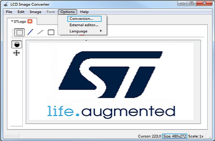 برای این مثال، اندازه تصویر مورد استفاده 480x272 است و آرم ST را نشان می دهد.