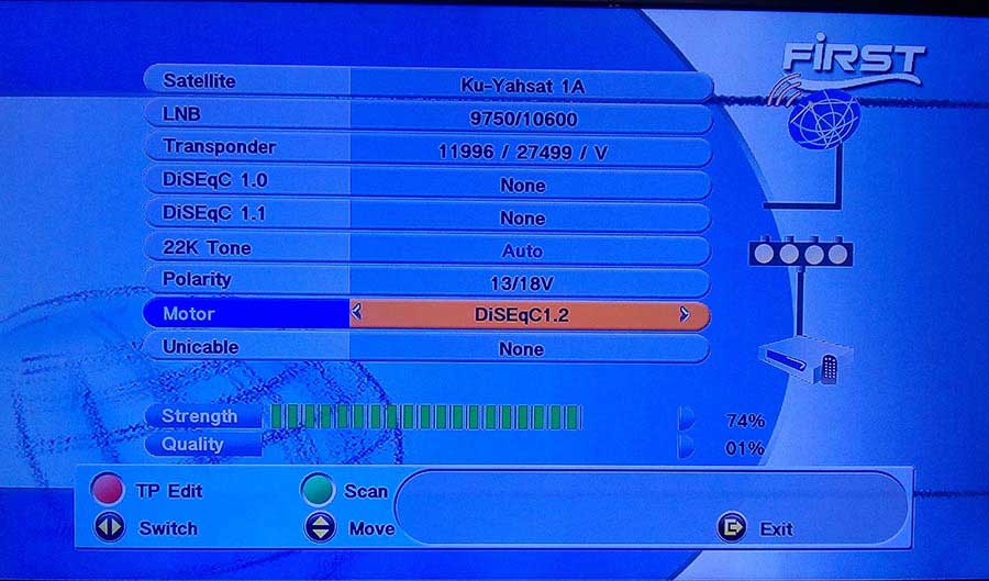 حال با نحوه عملکرد آن آشنا شدیم حال سوال پیش می آید دستورات از سوی رسیور به چه نحوی انجام می شود. در هر رسیوری منویی مربوط به تنظیمات موتور وجود دارد (البته برای پوزیشنر، DiSEqc1.2 می باشد) که تمامی دستورات بالا در آن به صورت گرافیکی وجود دارد.