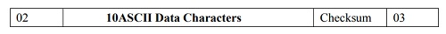 بایت اول 02 می باشد بعد از آن ده بایت دیتای کارت و به دنبال آن چکسام و بایت آخر 03 می باشد.