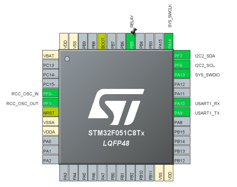یک پروژه با میکروکنترلر STM32f051C8 در STM32CubeIDE ایجاد کرده و برای تولید کد تنظیمات اولیه در برنامه خود مانند موارد زیر انجام می دهیم:
